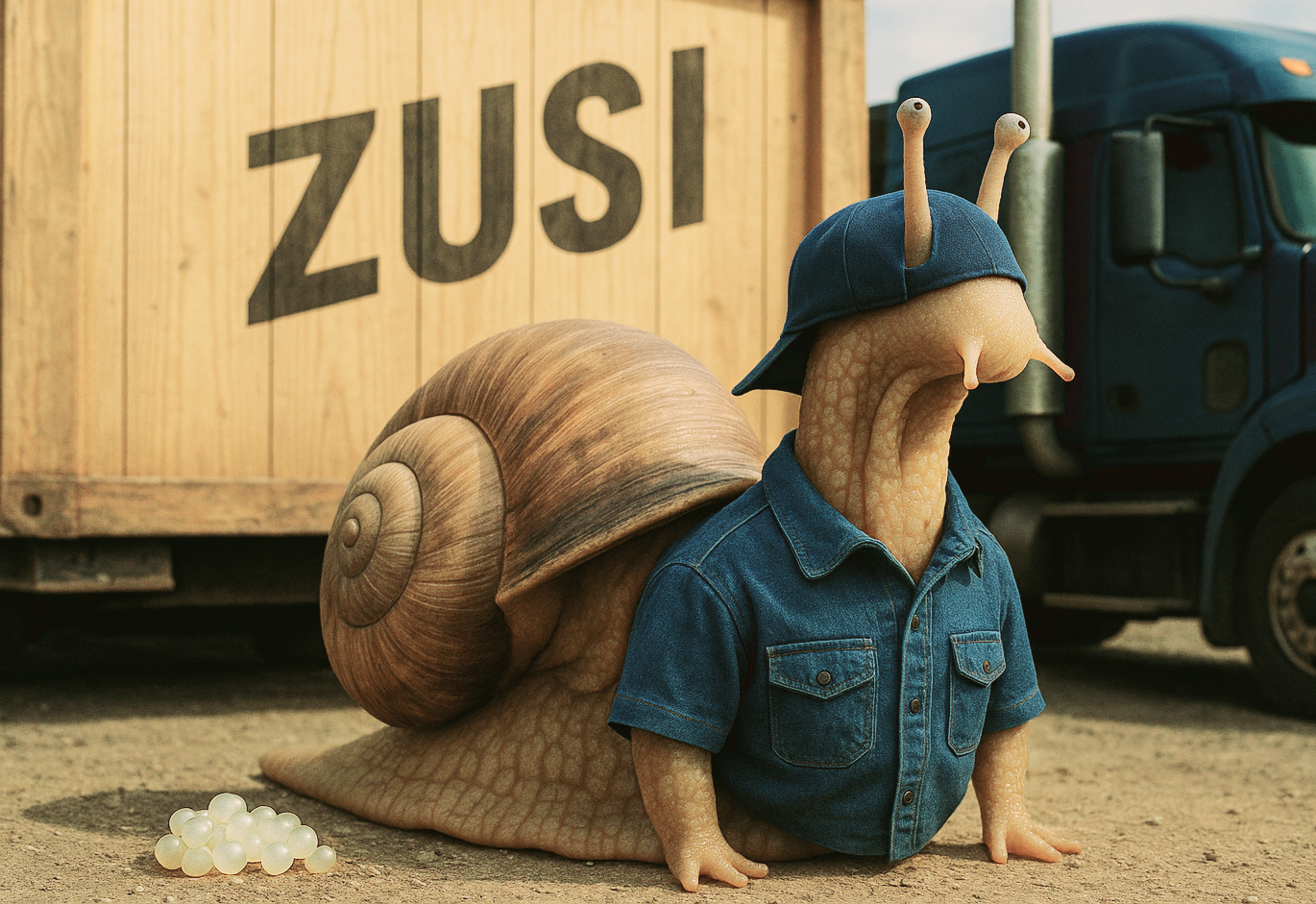 Und manchmal stockelt man mit Mühe und KI, weil keiner Zeit für ein Foto hat, was zusammen und das ist dann für die Müllhalde der Ankündigungsfotos. Zusi - Eine Schnecke sucht ein Zuhause.
